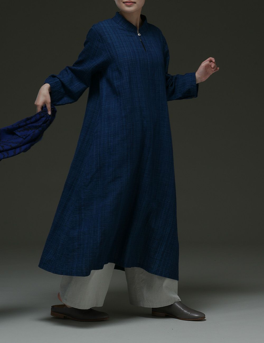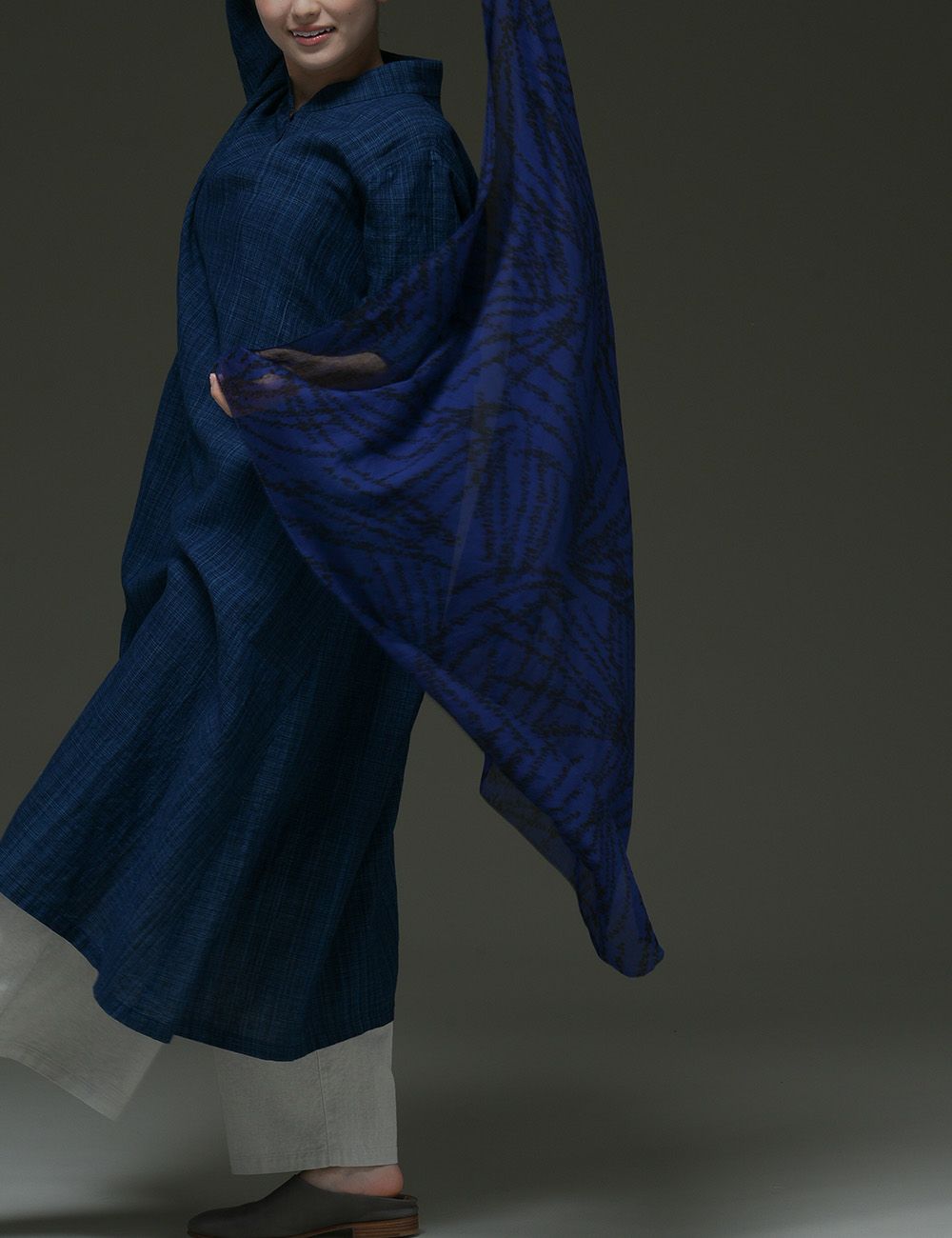 藍染綿麻雨絣