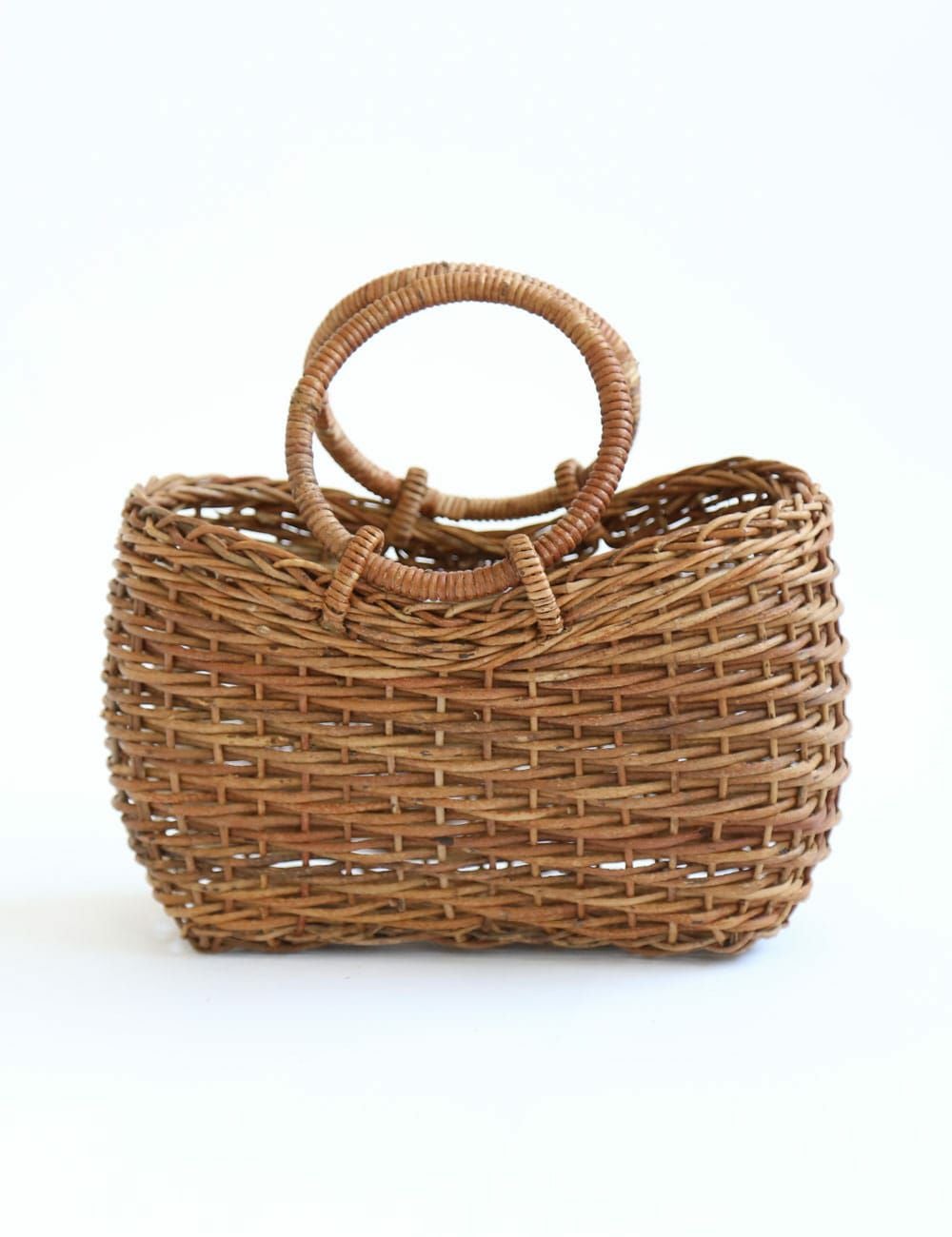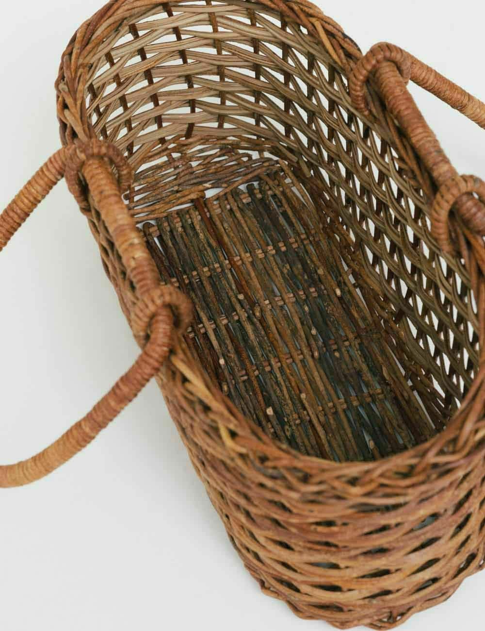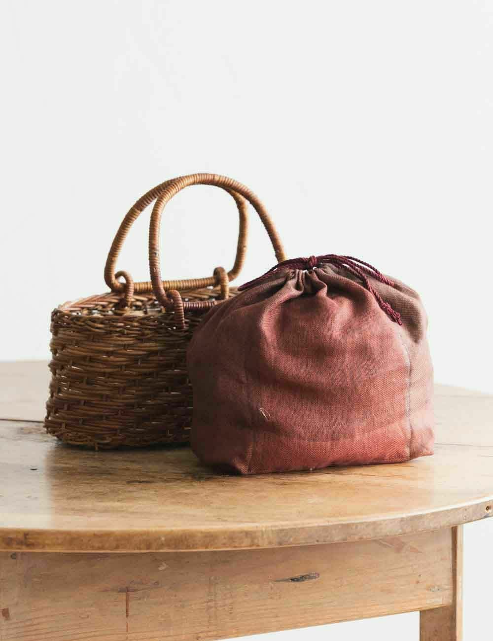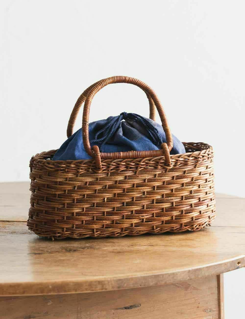 あけび蔓かごバッグ 妻胴張リング小(巾着付)