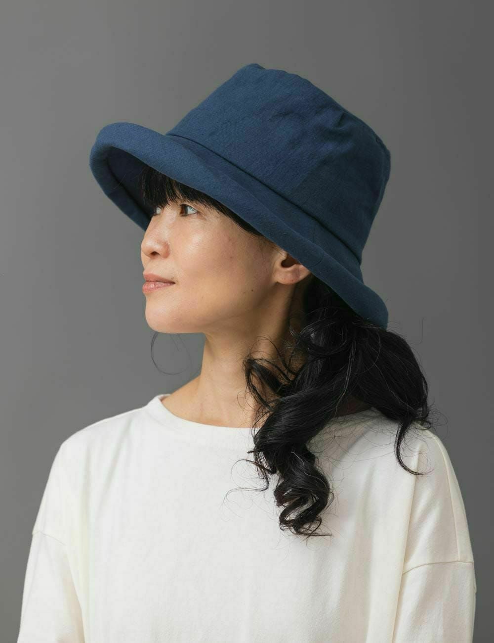 リネンつば広ハット