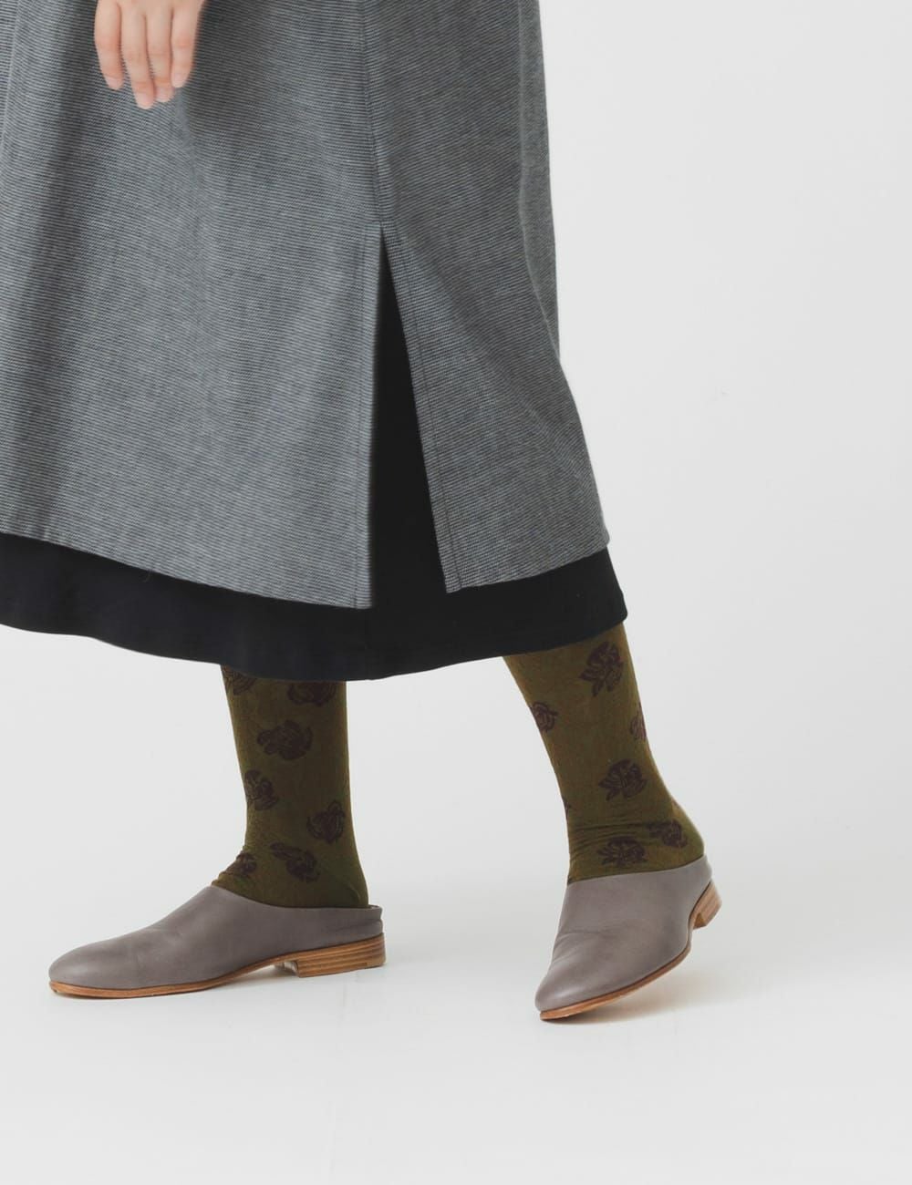 格子と花靴下
