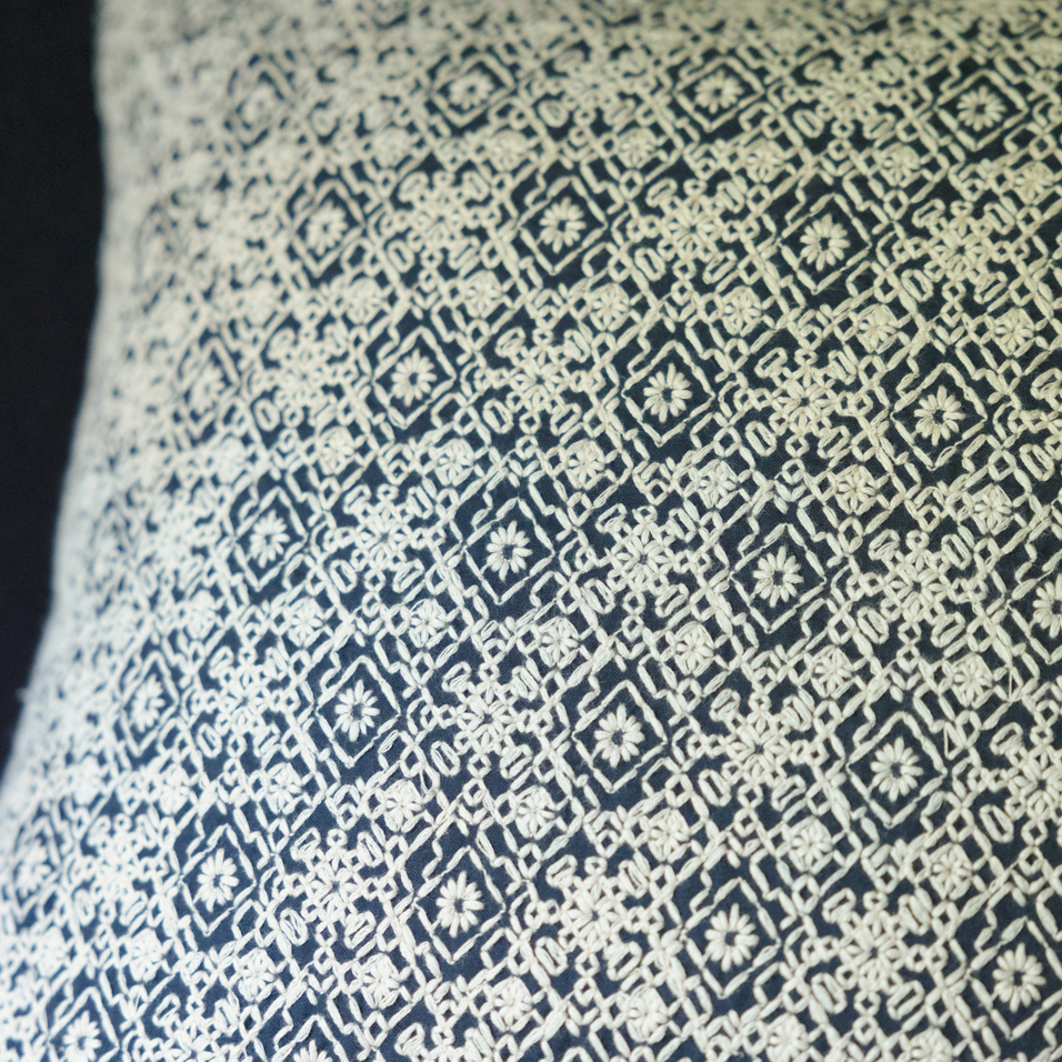 【 刺繍 】咲き誇る花をモチーフに、立体感のある刺し子風の刺繍で、楽しく仕上げました。刺繍のカバーは数種類ありますので、組み合わせる楽しみも。カバーのみでクッションは含みません。