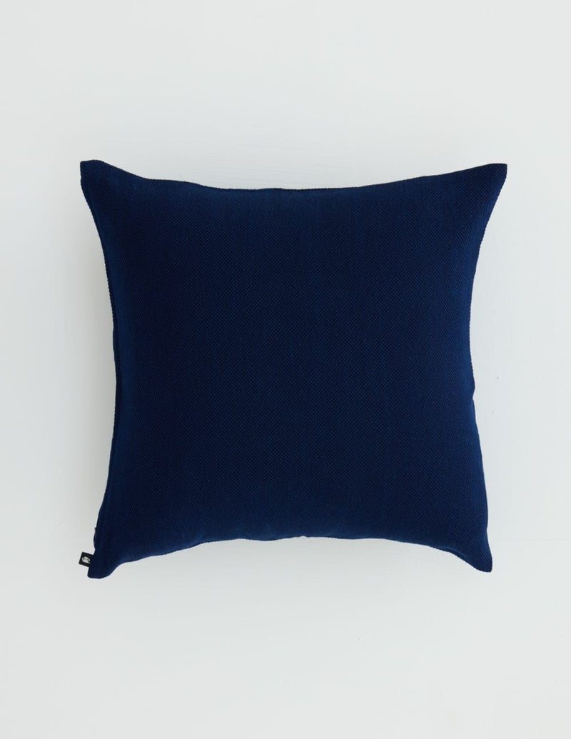【 藍染め 】織柄の個性も、藍の濃淡もさまざまな、4種の藍染め生地をパッチワークにしたクッションカバー。洗いを重ねるほどに、藍の色が育っていくのが楽しみです。定番の45×45cmサイズと、ひとまわり大きい55×55cmサイズの2種からお選びいただけます。