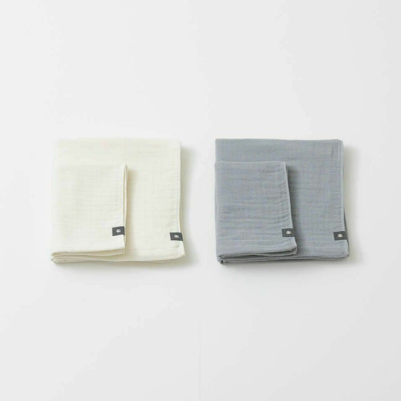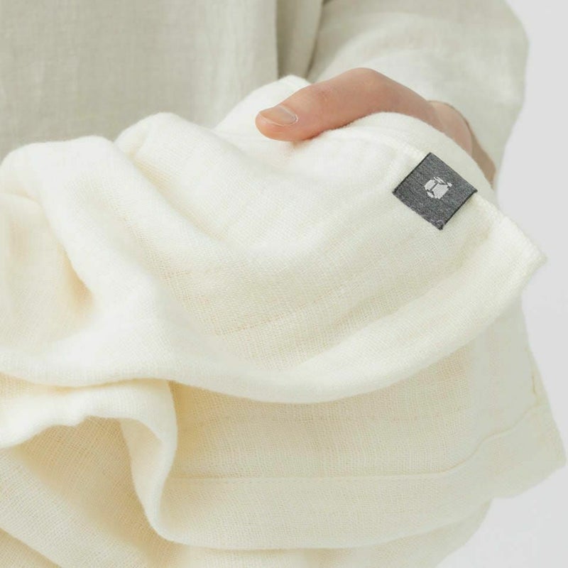 緯糸にはサンホーキンという上質な綿を使用。3重ガーゼの真ん中の生地を半分にする特殊ガーゼ織りでふんわり作られたタオルです。タオル産地として長い歴史を持つ、大阪、泉州の「後晒し」の技術で油分や不純物を取り除き、綿本来のすぐれた吸水性を存分に発揮させます。