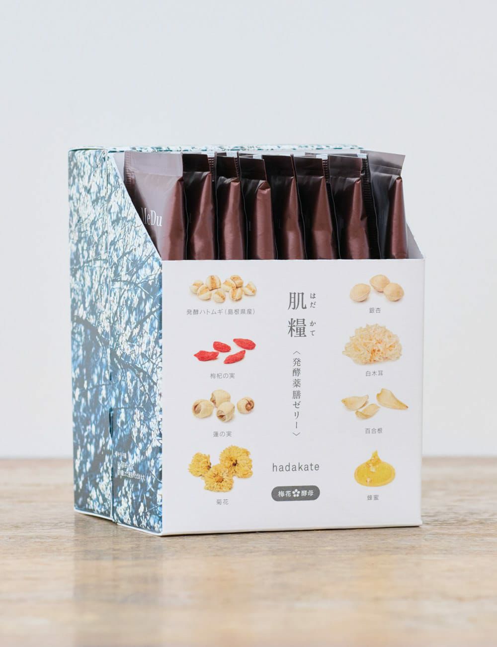 島根県産ハトムギを梅花酵母で発酵させたペーストに、蜂蜜など天然食材を加えて熟成。古来より薬膳料理で使われてきた8つの素材の相乗効果が生きています。発酵の恵みでおなかの中からきれいになる、夜の新習慣です。