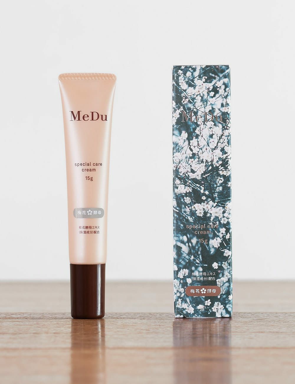 週2~3回の夜パックづかいだけでなく、年齢の気になる目じりやほうれい線、首のシワをふっくら満たす毎日のポイントケアにも。 「梅花酵母」をはじめとするMeDuの美容成分が、悩める大人肌をパッと明るく、つやめく印象へと導きます。