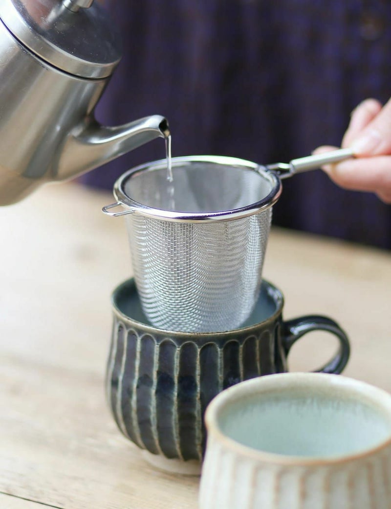カップの中にストンと入れて茶葉を入れ、お湯を注げばティーバッグのようにお茶が楽しめます。深型なのでカップの底まで茶葉が対流し、美味しくいれられます。ポットがなくても、そのまま茶葉にお湯を注いでいれることもできます。