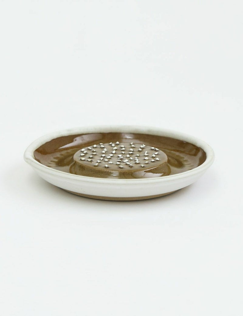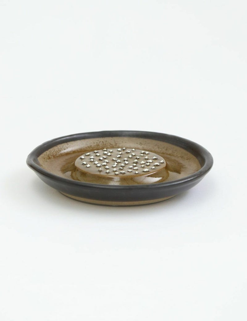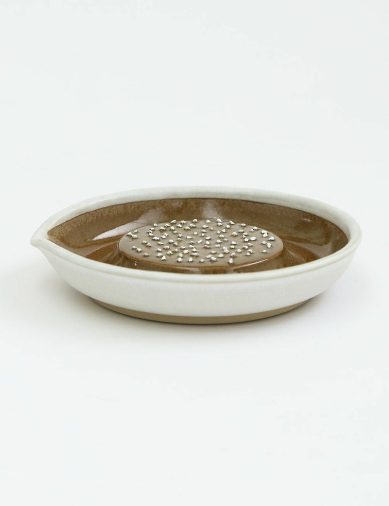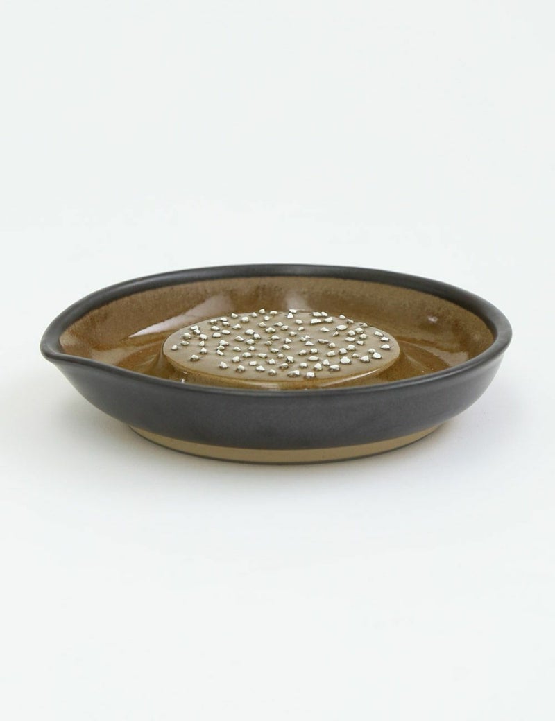 「大正14年創業の石見焼の窯元、「元重製陶所」。古くははんど(水がめ)や植木鉢など、常に生活に密着した『道具』を作ってきましたが、現在は作るものを「すり鉢」と「おろし器」のみに特化しています。直接口に入れるもののための陶器ですので、材料も100%安心安全なものを使用したり、すり味、おろし味に関係するために、職人の手作業にこだわるなどで、品質に自信を持っています。
