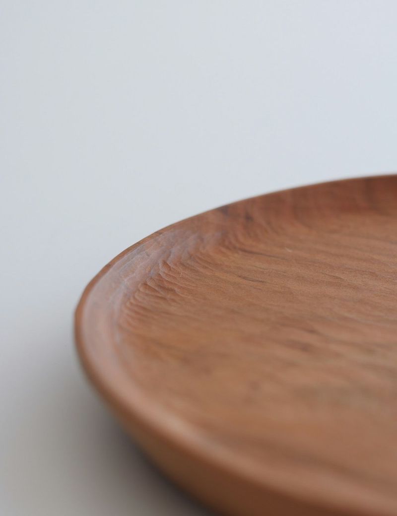 良いお皿は、その場の空気を変えてくれるもの。そこでぬくもりのある木のお皿はいかがでしょう。こちらは、ちょっと大きめのお皿で、食事にはもちろん、一人用のトレーにも使えそう。島根には、こんな味のあるお皿がいろいろと揃っています。