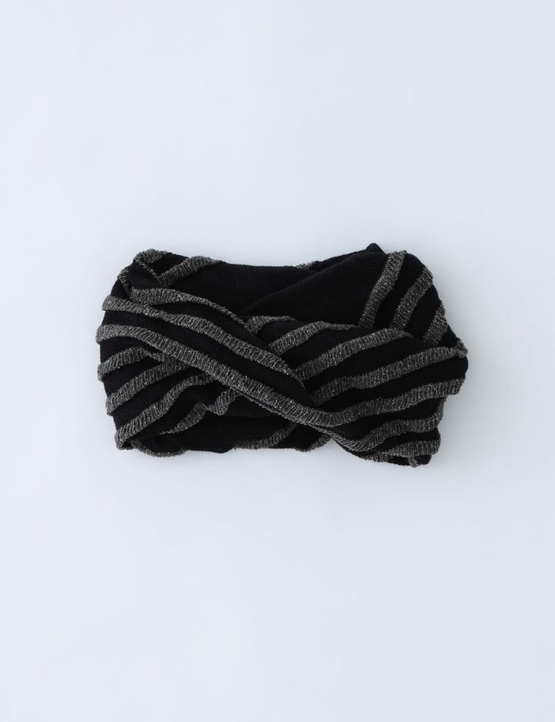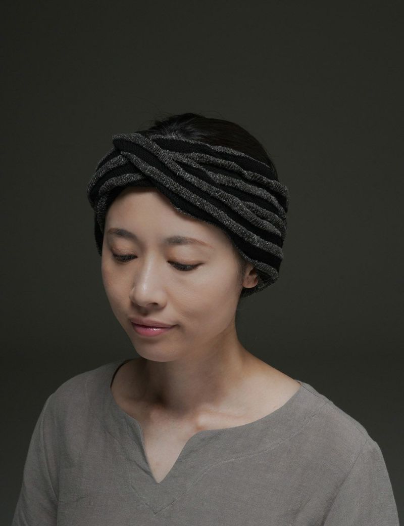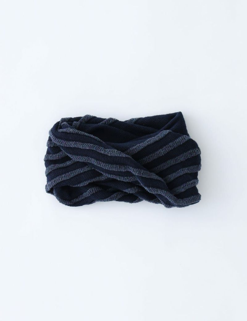 しなやかな綿シルクを生かした、ボーダー状の編み地がおしゃれなターバン。軽くて伸縮性にすぐれ、蒸れ感を抑えたストレスフリーな着け心地を叶えてくれます。ヘアスタイルが決まらない時や、活動的に動きたい日の心強い味方です。