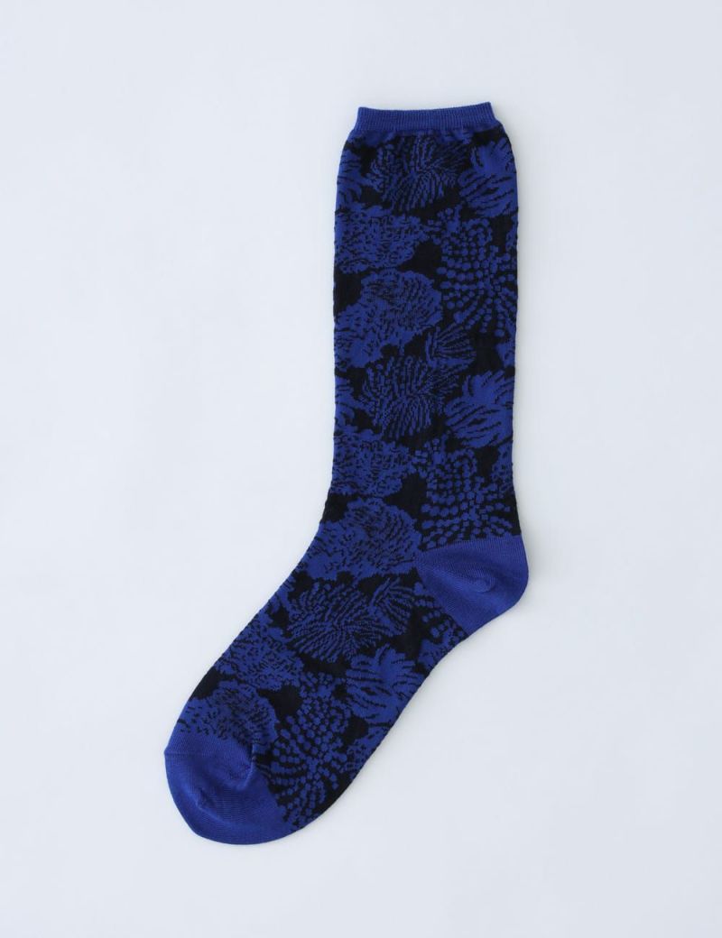 糸玉を思わせるモチーフを、繊細な編み地で表現したソックス。コーディネートに合わせて足元の差し色をお楽しみください。