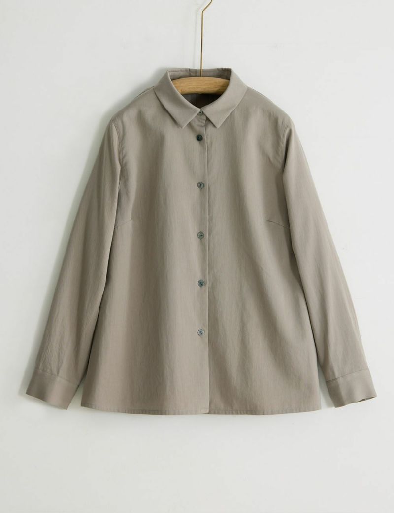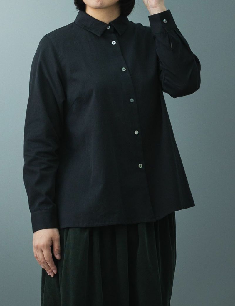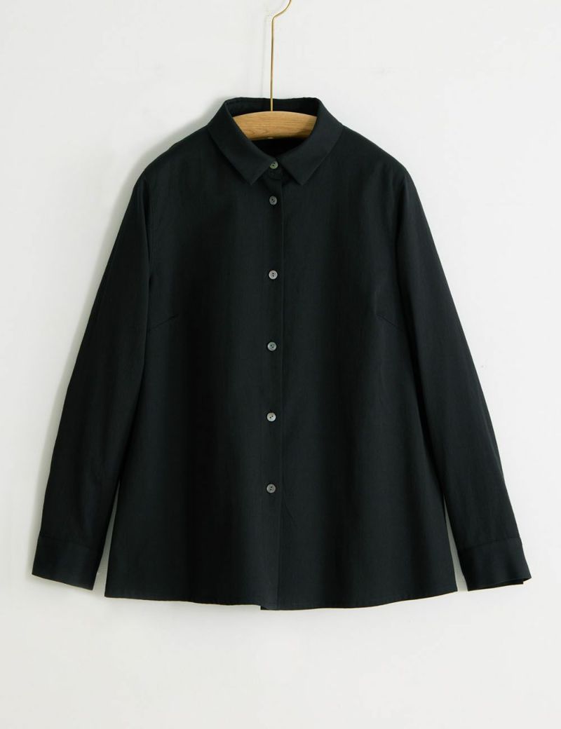 超長綿オーガニックコットンを贅沢に使った、なめらかな綿サテンのブラウス。洗いざらしのノーアイロンでも美しく、やさしげな佇まいで着る人を包みます。きちんと感のあるスタンダードな形は、流行に左右されることなく長く活躍してくれるのが魅力。