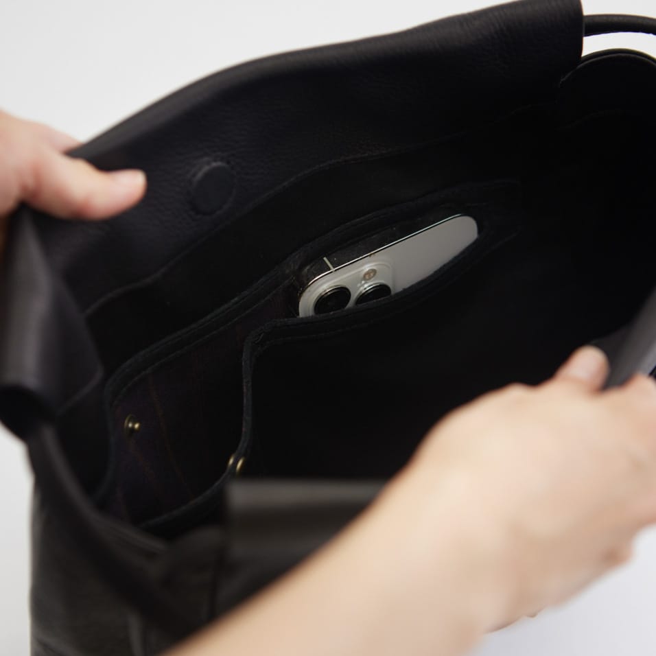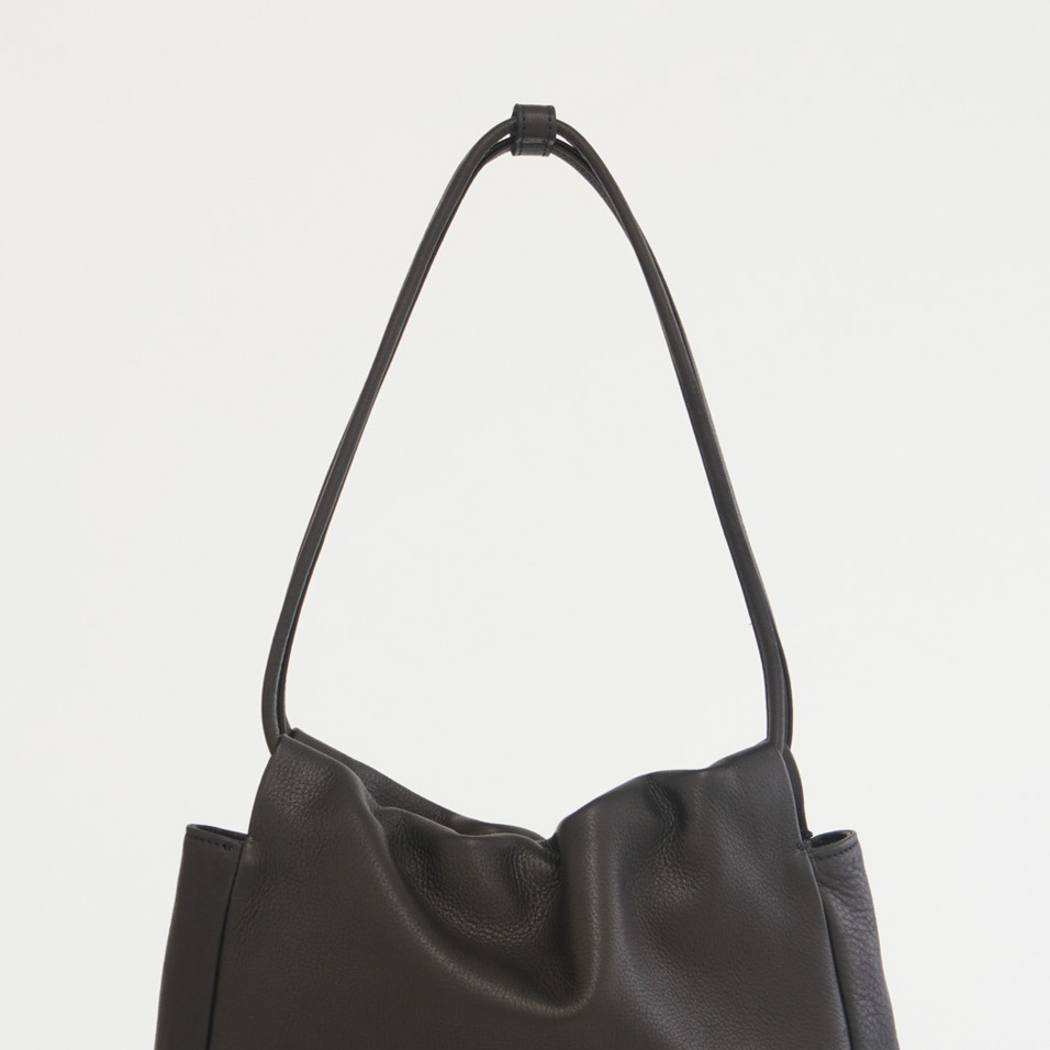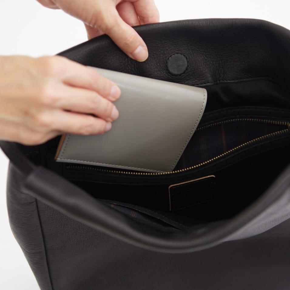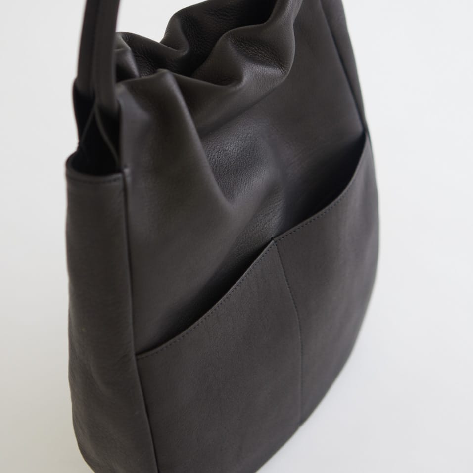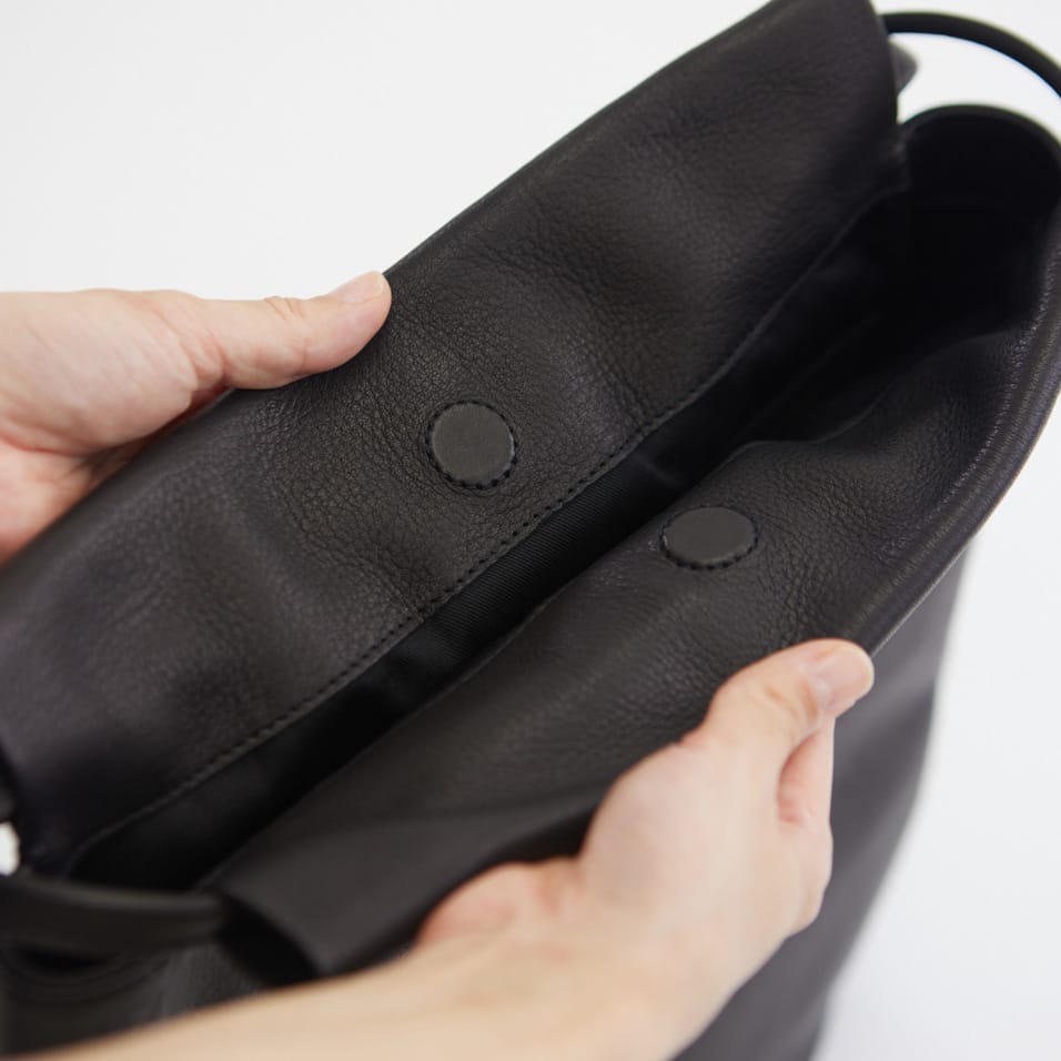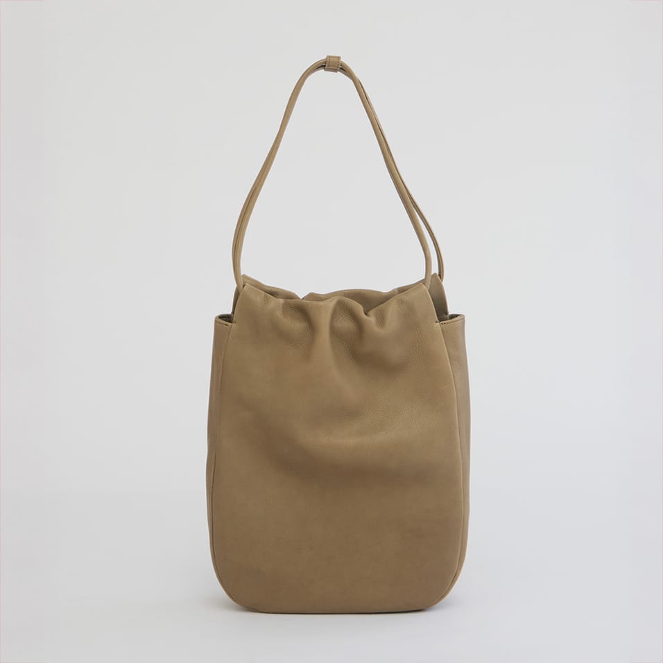 【 B.stuff×群言堂 】日本の匠の技にこだわる「ビースタッフ」と群言堂がコラボレーション。お仕事シーンにも似合うしなやかレザーのバッグは、ハンドルを調節して開口部をきゅっと絞れるのがポイント。使うほどに肌になじんで愛着が増す逸品です。