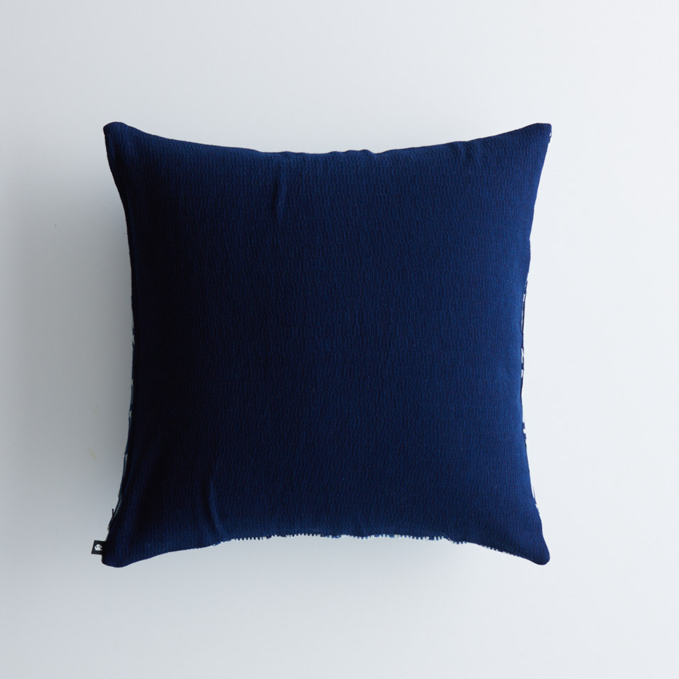 【 藍染め 】濃いめの藍と白の糸で、菱形を立体的に表現。伝統的な「刺し子」を織物で再現した、職人技が光る生地です。同じ柄のマルチカバーや、とても近い柄の別商品もありますので、チェックしてみてください。カバーのみでクッションは含みません。