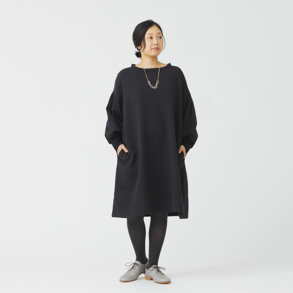 ざぶざぶ洗える生地で作った、袖口のリブが便利なワークワンピース。おうちでの仕事着としてはもちろん、ちょっとそこまでのワンマイルウェアとして、アクセサリーと合わせればきれい目にも着まわしていただけます。