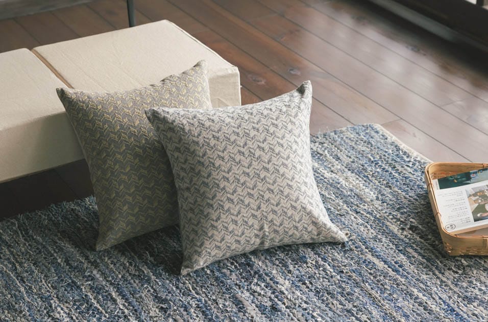 素材やデザインが豊富に揃うクッションカバー。群言堂オリジナルの生地はどれもこだわりがつまっています。季節やお部屋の雰囲気に合わせてお楽しみください。