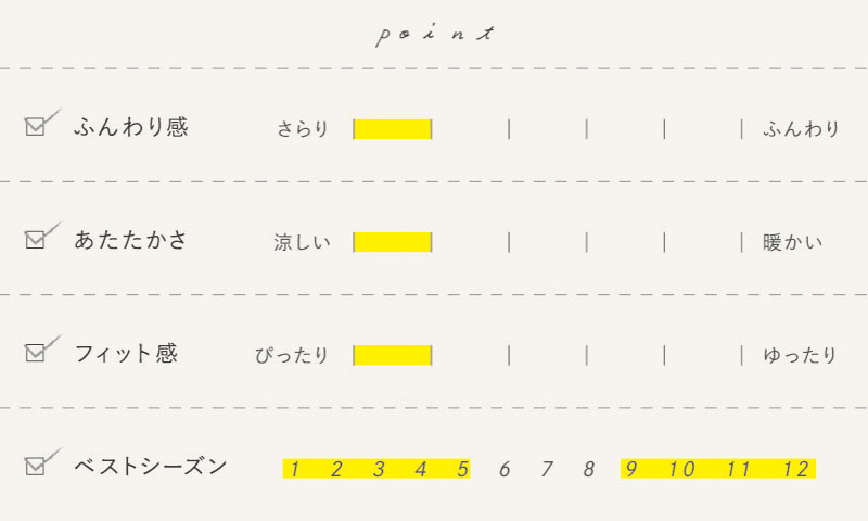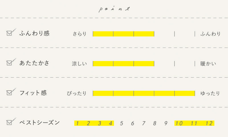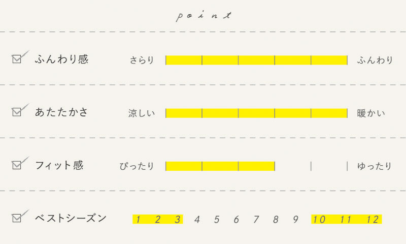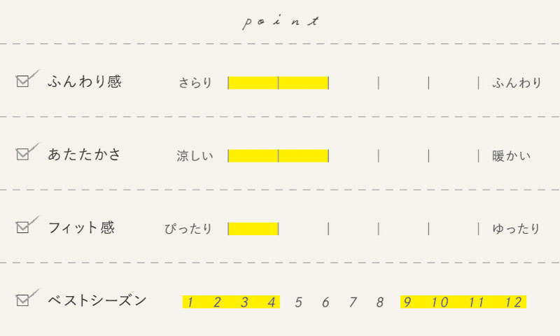 ソフトな風合いと適度な厚みで、一枚でも着やすく、ロングシーズンで着ていただけます。