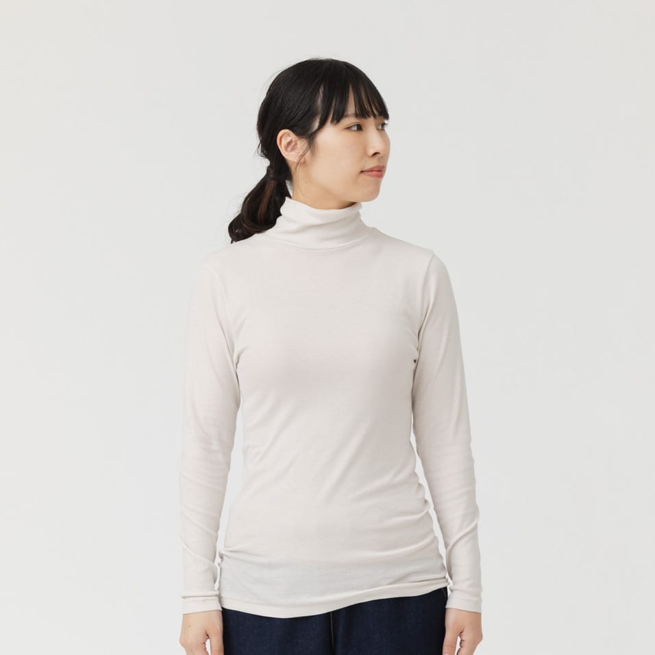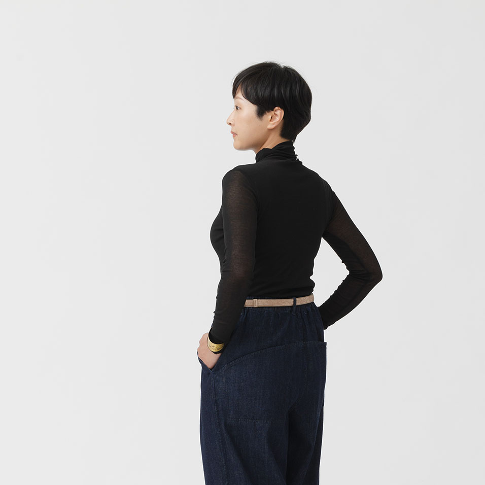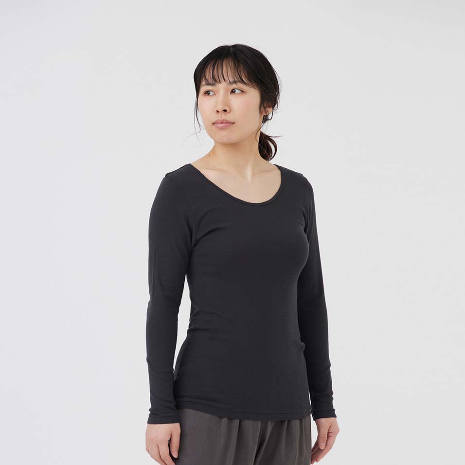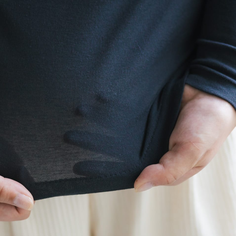 重ねる前提で考えた薄手の生地は、程よくフィット感がありながら締め付けず、身体をやさしく包み込んでくれます。脇は無縫製なので、肌へのストレスがなく快適です。