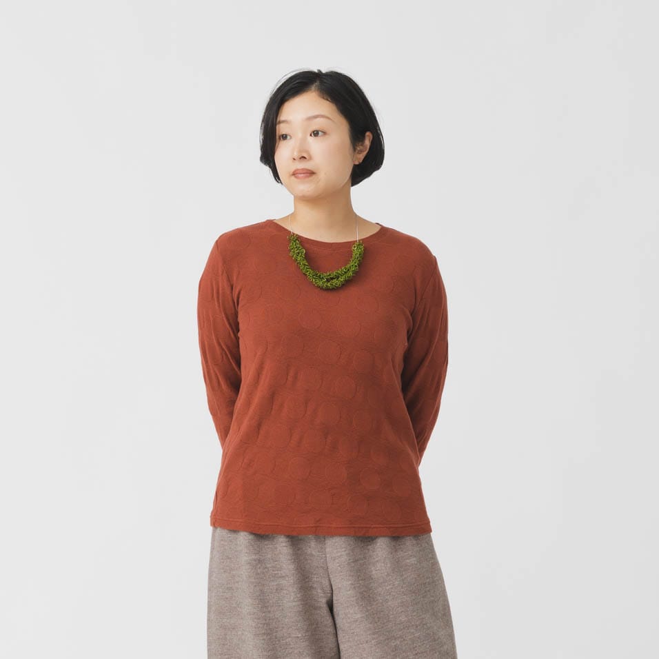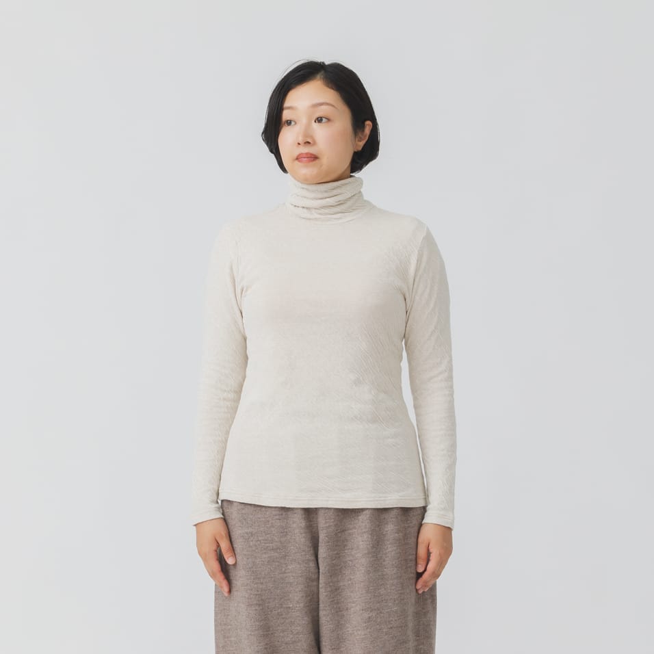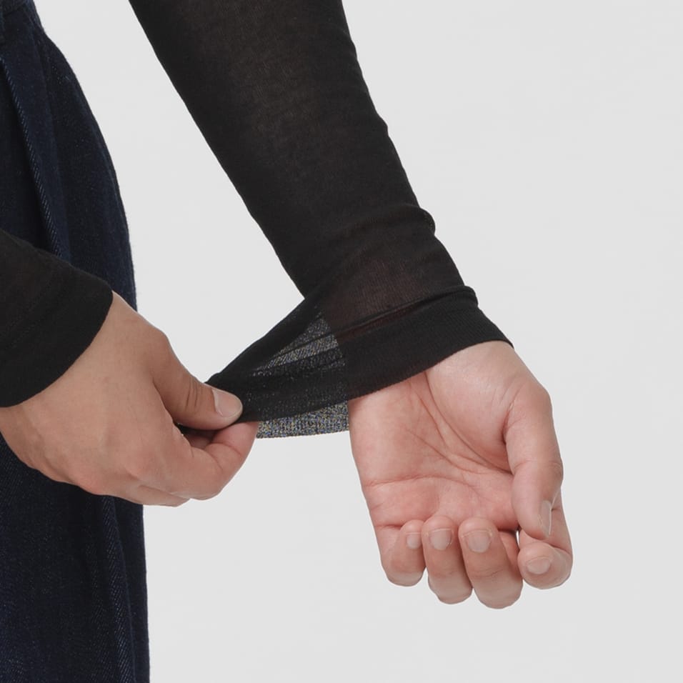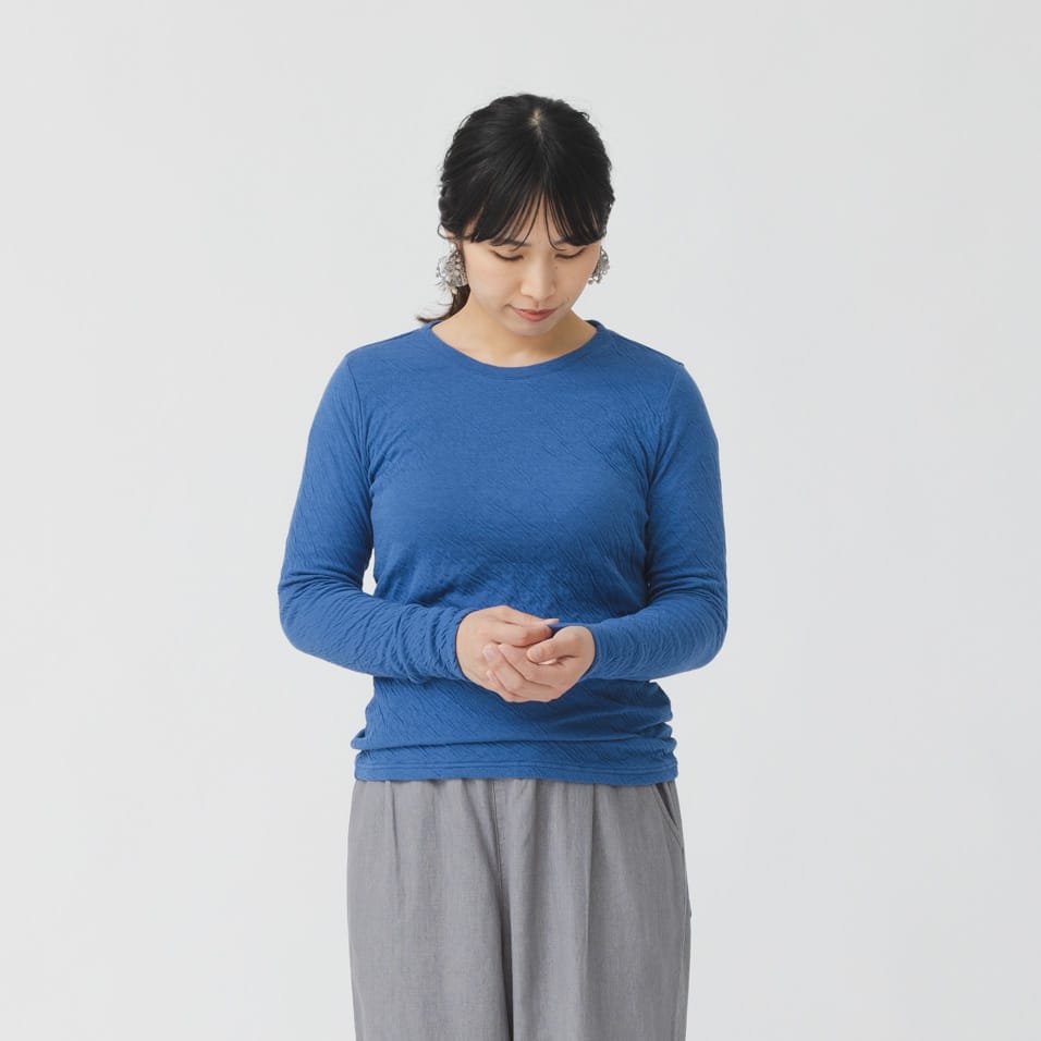 重ねる前提で考えた薄手の生地は、程よくフィット感がありながら締め付けず、身体をやさしく包み込んでくれます。脇は無縫製なので、肌へのストレスがなく快適です。