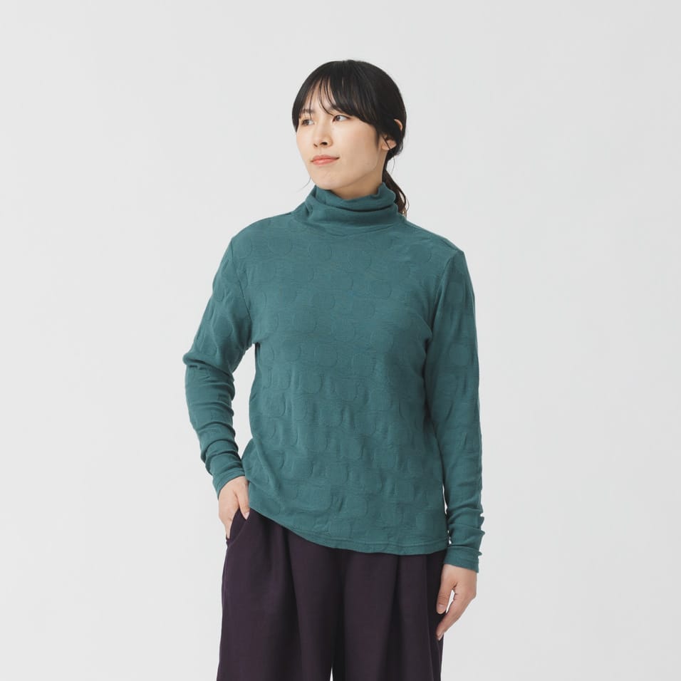 無地ライクな中にドット柄がさりげなく編み込まれた「ドットジャガード」。