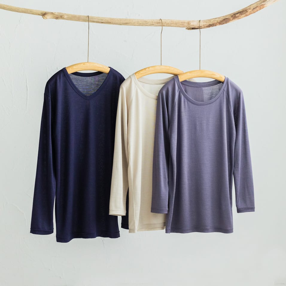 上質なウールを使用した、素肌に着てもチクチクしないメリノウールインナー。