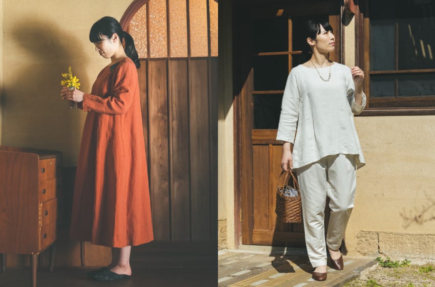 石見銀山の植物から授かり、生地も天然繊維で国内縫製にこだわった、日本の四季の暮らしにあう服ができました。