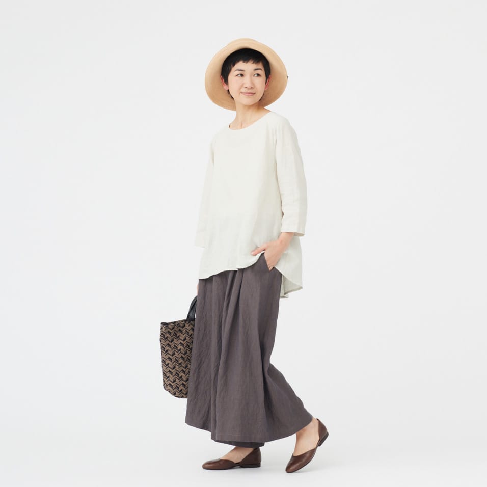 シンプルなデザインと表情豊かなリネン素材で、美しい色を纏う楽しさを感じていただけます。