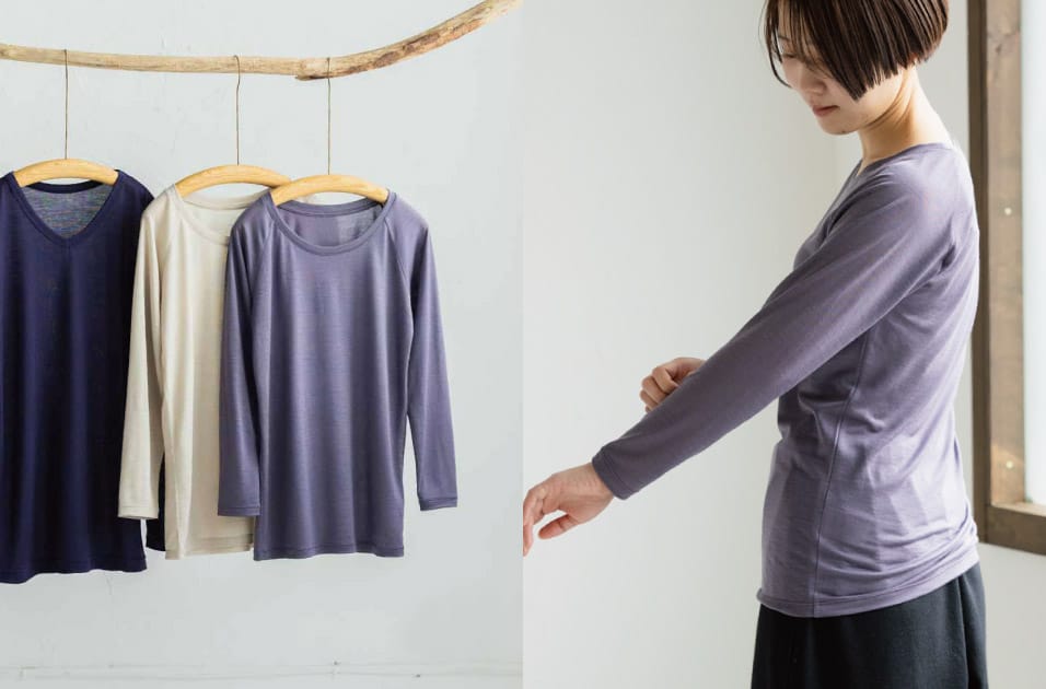 素肌にやさしく快適に暖をとれるインナーがあれば──。そんな想いから、群言堂は鳥取県にある鳥取南海紡績株式会社(以下、南海紡績)とタッグを組み、秋から冬、春先まで着用いただけるウールインナーをつくりました。