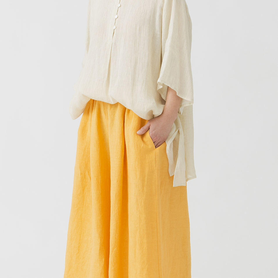この夏の群言堂はキレイめカラーのボトムスが勢ぞろい。綿や麻の天然素材で、涼しい着心地と心地よい肌ざわりのものばかりです。雨の日も明るい気分にしてくれる爽やかカラーのアイテムをご紹介いたします。