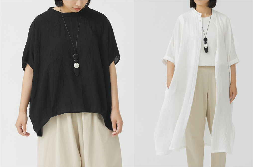 薄手のピケ織にシワ加工を加えて洗いざらしのようなリラックスした表情を与えています。NEW 風さらコットン
