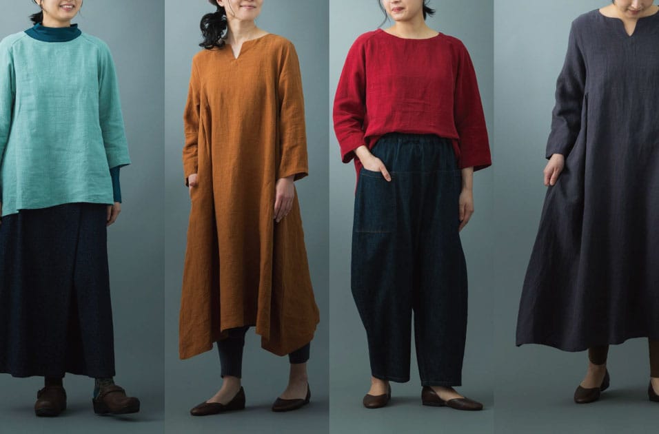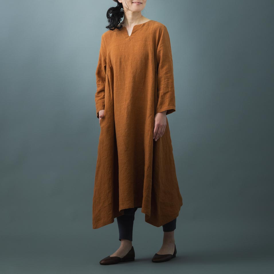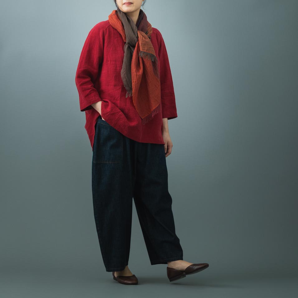石見銀山周辺の植物で染めた「里山パレット」に、こっくり秋らしい色が揃いました。 ヴィンテージ感のあるリネン素材は着込むほどに肌に馴染みます。 野菜や果物のように、今年だけのこの色・組み合わせをお楽しみください。