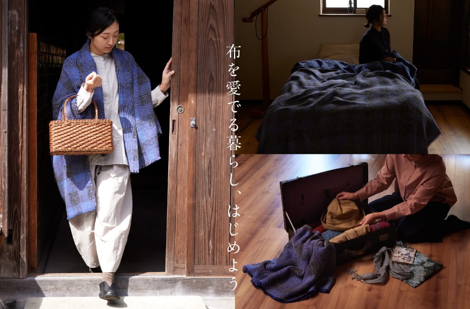 様々なスタイルで使える暮らし良い布は、朝晩の気温の変化が激しい今の時期にぴったりです。