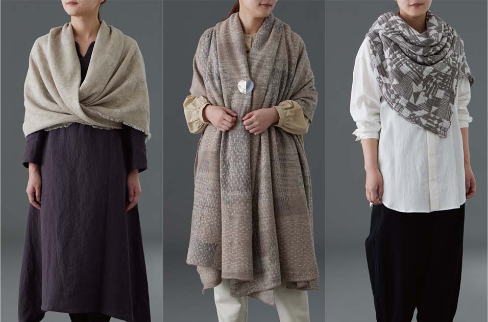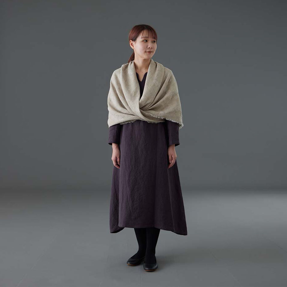 巻き方によって印象が変わる暮らし良い布を使ったコーディネートをご紹介いたします。