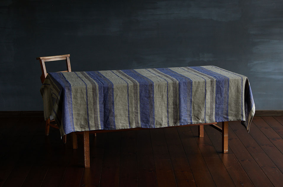 吸収性がよく乾きも早い麻の素材なので、テーブルクロスとしても。ぱっと明るい印象になります。