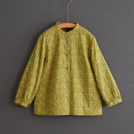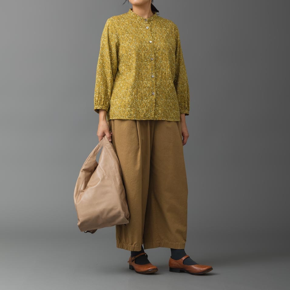 二重織和更紗プリント ブラウス天竺葵(てんじくあおい) からしいろモデル身長:157cm
