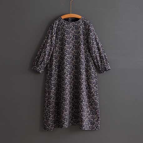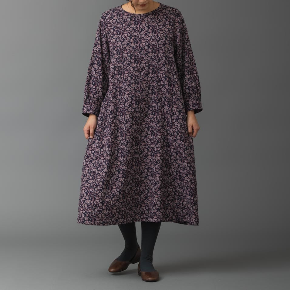 二重織和更紗プリント ワンピース蛍紫胡(ほたるさいこ) のうこんモデル身長:157cm