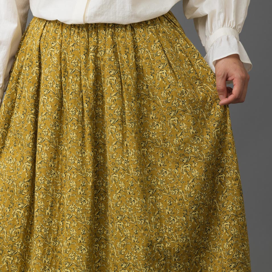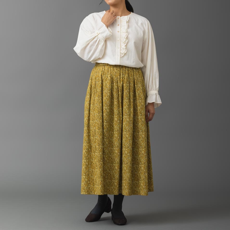 二重織和更紗プリント スカート紅李(べにすもも) からしいろモデル身長:157cm