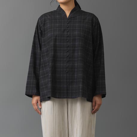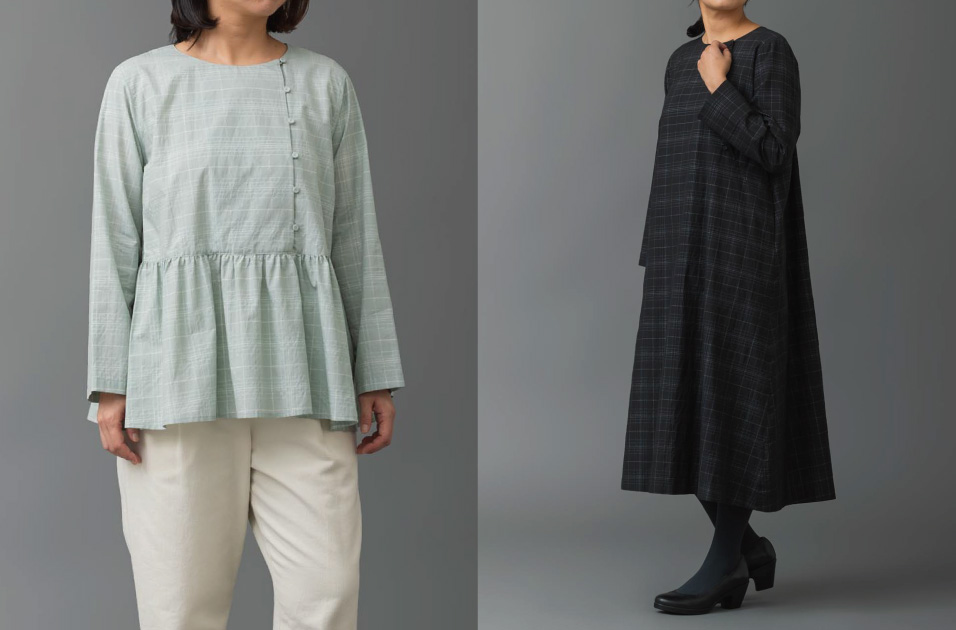 細めの線でランダムに織られたチェック柄です。薄手だけどしっかりとした生地は、柔らかくてしなやかな肌触り。程よくツヤを感じる上品な印象です。