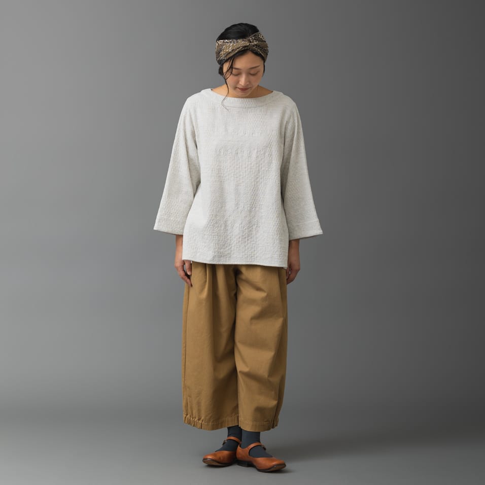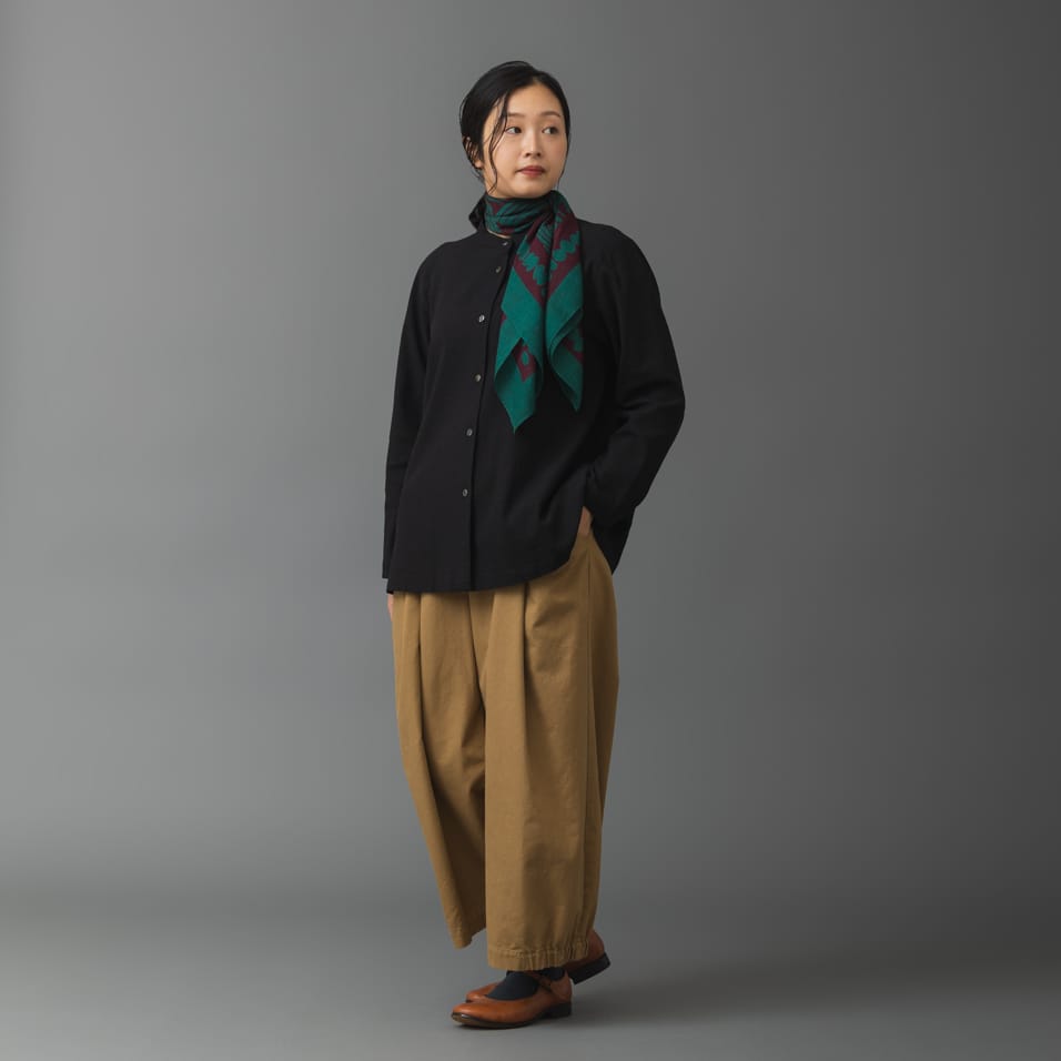 〈3月入荷〉麻ガーゼ ブラウス日日草(にちにちそう) くろ〈3月入荷〉綿麻梨地織 パンツ木天蓼(またたび) きなり