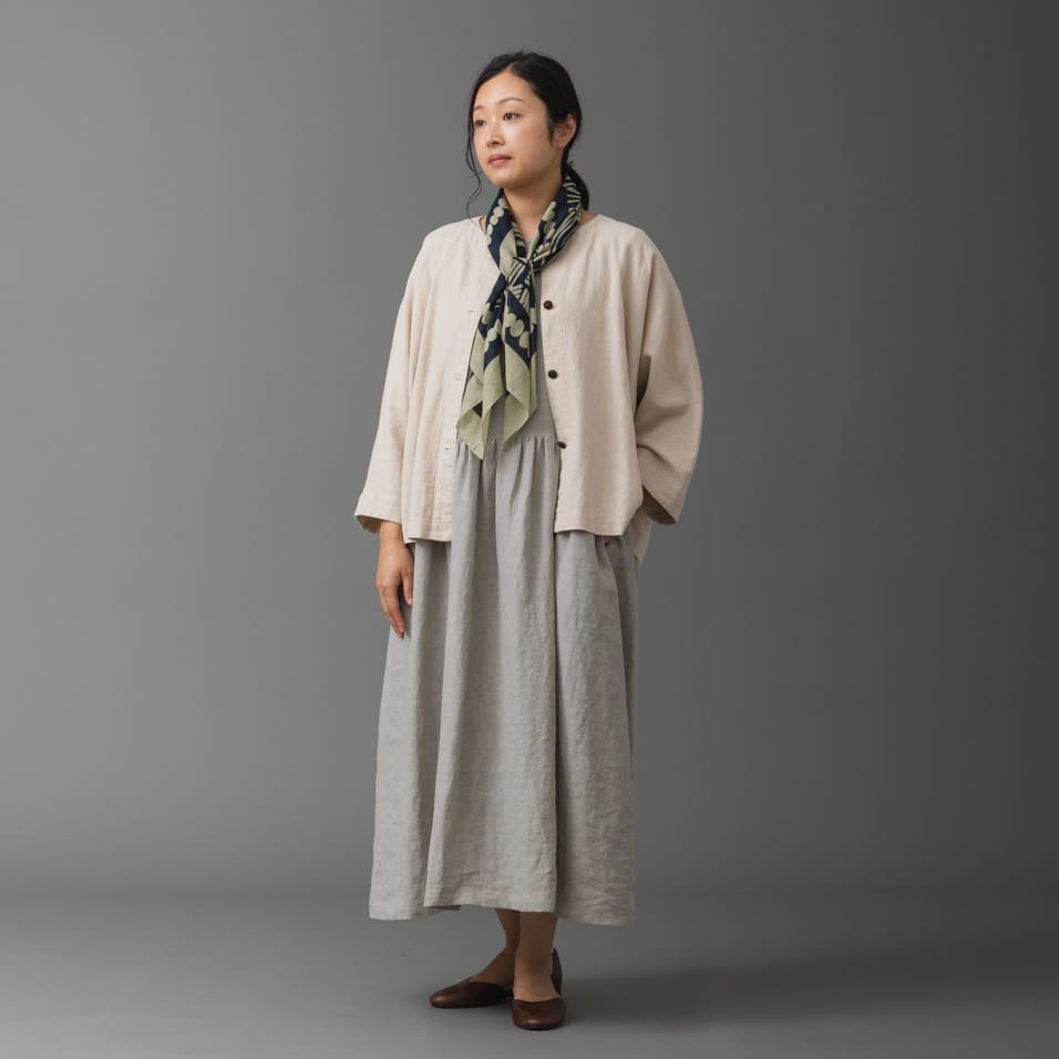 〈3月入荷〉綿麻梨地織 ジャケット一初(いちはつ)きなり〈3月入荷〉リネンパレットジャンパースカート ぎんねず