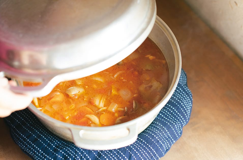 素材のおいしさを引き出してくれる「無水鍋」と「鍋帽子」。