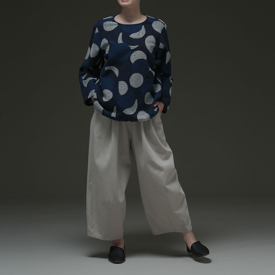 インディゴ月の満ち欠け プルオーバー朝霧草(あさぎりそう) あおいろ モデル身長:163cm