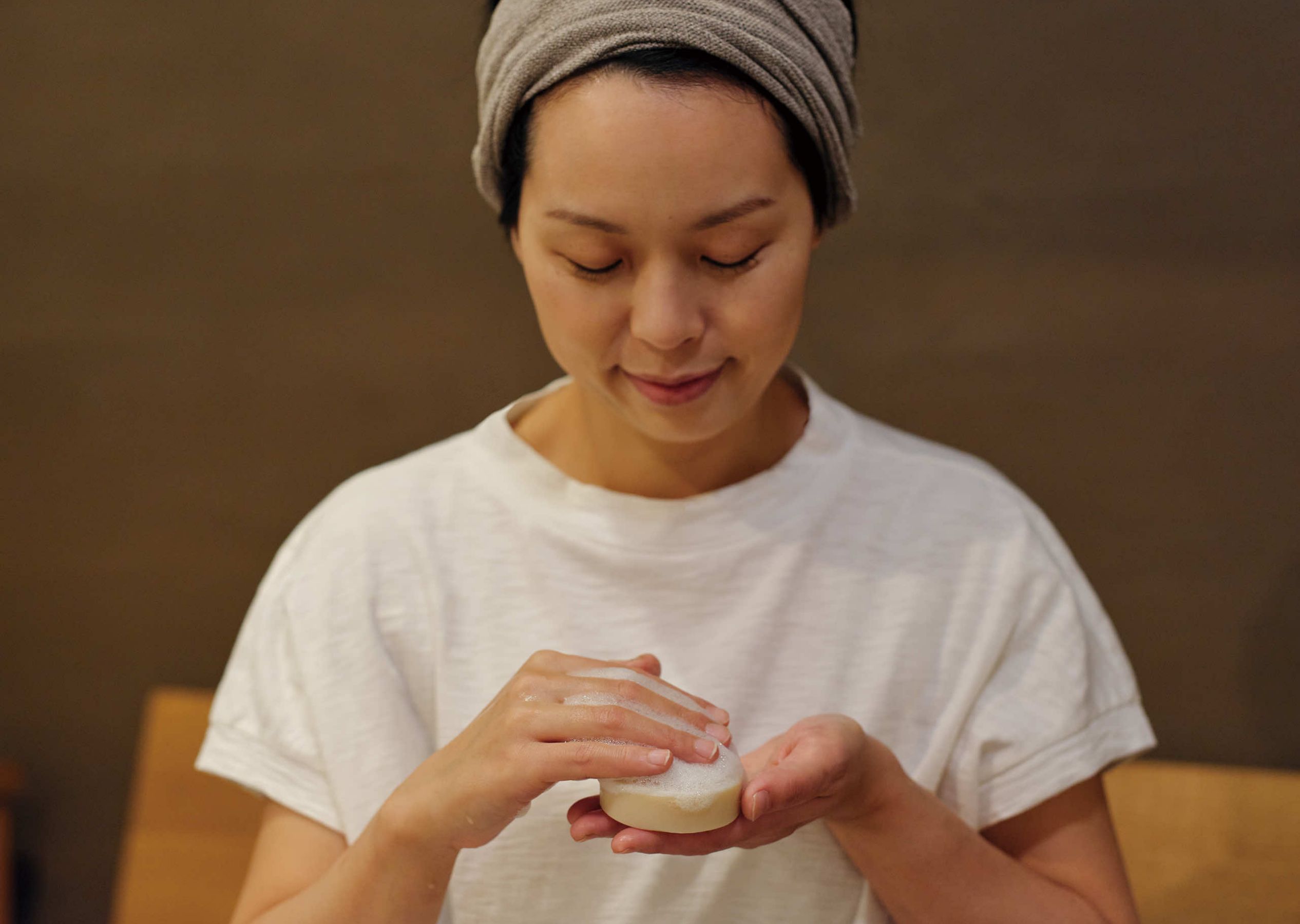 洗顔石けんに使われている酒粕は、島根の「今田どぶろく製造所」さんが梅花酵母で日本酒を醸造する過程で生まれたもの。自然の恵みが息づく酒粕を石けんにして、あなたの肌にお届けします。