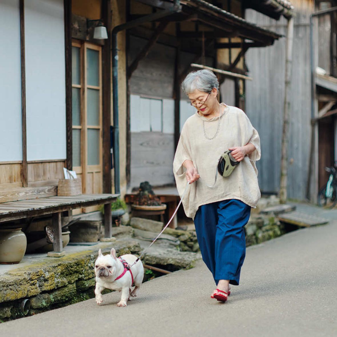 私のこれまでの人生を振り返ってみると、節目節目で「授かった」としかいいようのない出会いがありました。昔から動物は好きでしたから、これまでにも捨て犬や迷い犬、ペットショップで売れ残った目の悪い猫など、さまざまな子たちと一緒に暮らしてきました。生きものとの出会いだけではありません。そもそも大森町という居場所と出会ったのも、ボロボロだった武家屋敷・阿部家と出会い、改修することになったのも授かったご縁でした。私という人間は、捨てられたもの、他人様から「取るに足らない」と思われているものの中に、きらりと光る価値を見出すのが好きなのでしょう。いえ、考えてみれば私自身だって、ずっと変わり者だヘンテコだと言われてきたのが、ここ大森町へ来て、ようやく自分らしく生きられる場所を見つけたのですから、類は友を呼ぶのかもしれません。ここに来るまで田舎暮らしと縁遠かった福は、最初は道を歩くのにも溝を飛び越えるのにも足がすくんでいましたが、今では本来の姿を取り戻したようにのびのびと町を走り回っています。福と私、仲良しコンビの毎日は楽しくにぎやかです。