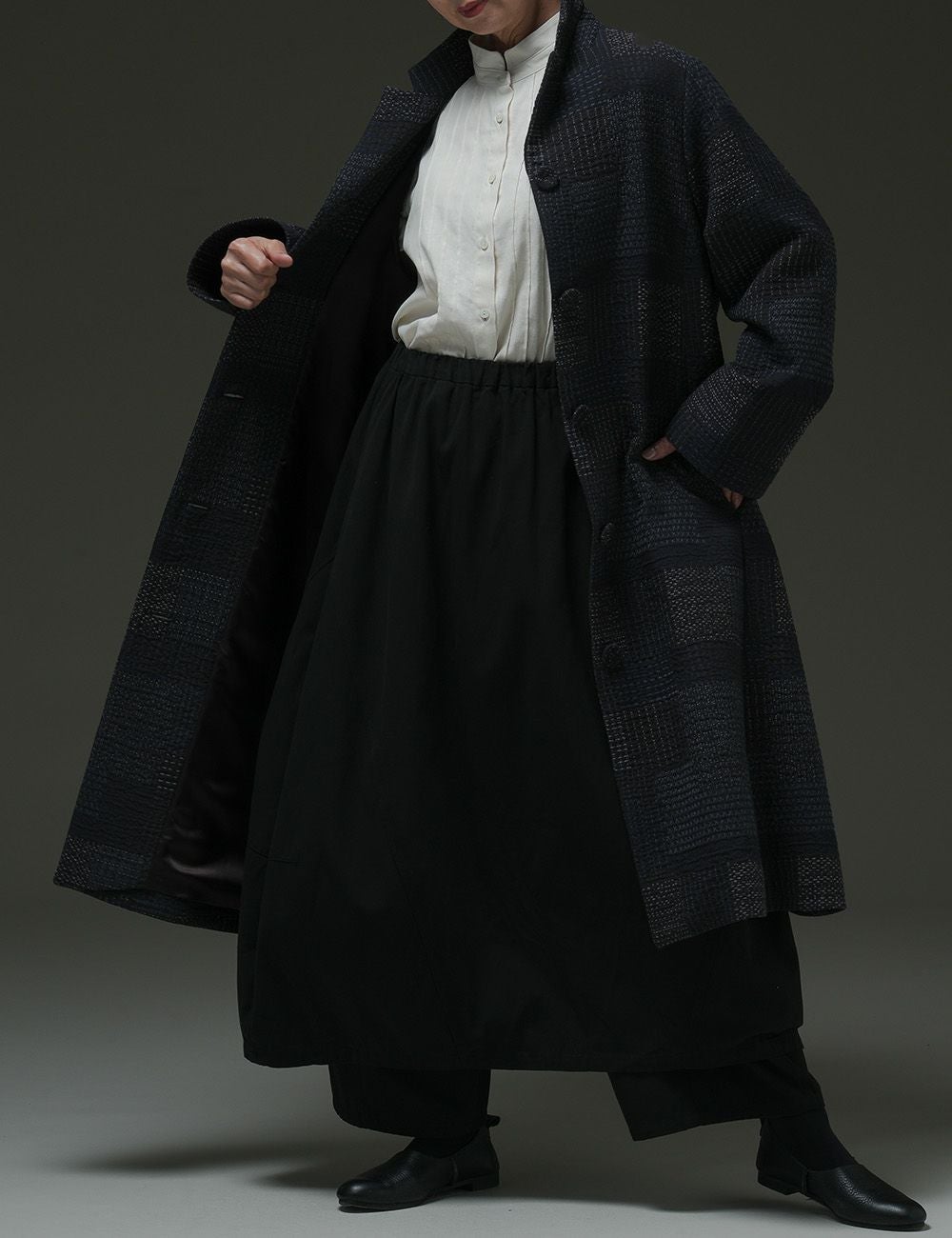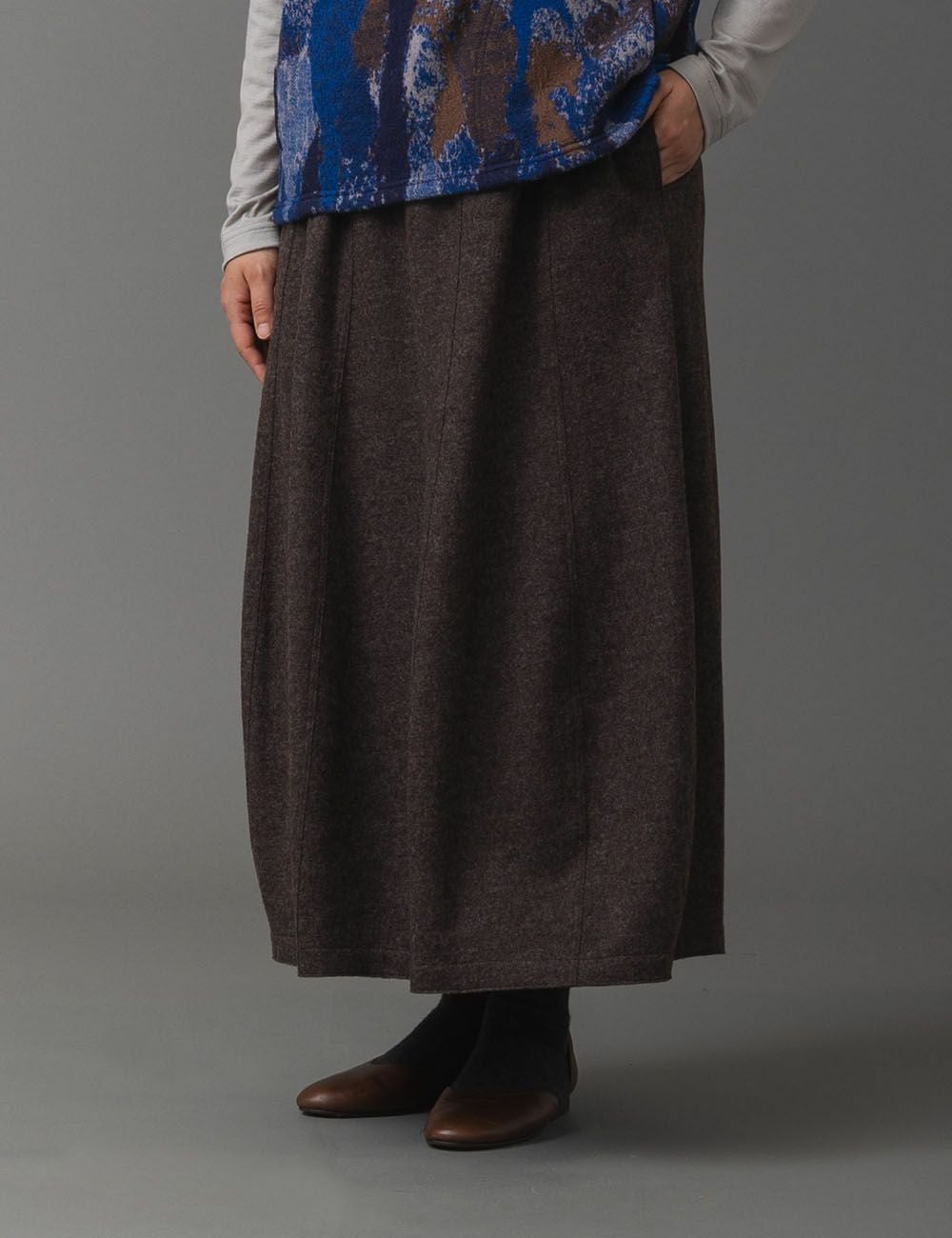ウール圧縮 スカート貝母(ばいも)